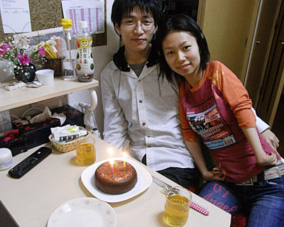 [写真2] 着火マンが壊れててカセットコンロで火をつけたケーキとキャンドル